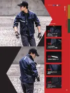 突起物なしデザイン、反射素材(バック・フロント)、背当てメッシュ、左腕ペン差し、左胸ポケットペン差し、左胸ホルダーループ、両サイド:アジャスター 隠しドットボタン、カフス 隠しドットボタン、内ポケット