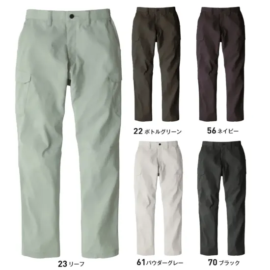 ・品番:EBA6294・商品名:シャーリングカーゴパンツ・カラー:22.ボトルグリーン 23.リーフ 56.ネイビー 61.パウダーグレー 70.ブラック・サイズ:S~6L(Sサイズはユニセックス対応)