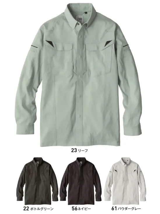 ・品番:EBA6295・商品名:長袖シャツ・カラー:22.ボトルグリーン 23.リーフ 56.ネイビー 61.パウダーグレー・サイズ:S~6L(Sサイズはユニセックス対応)