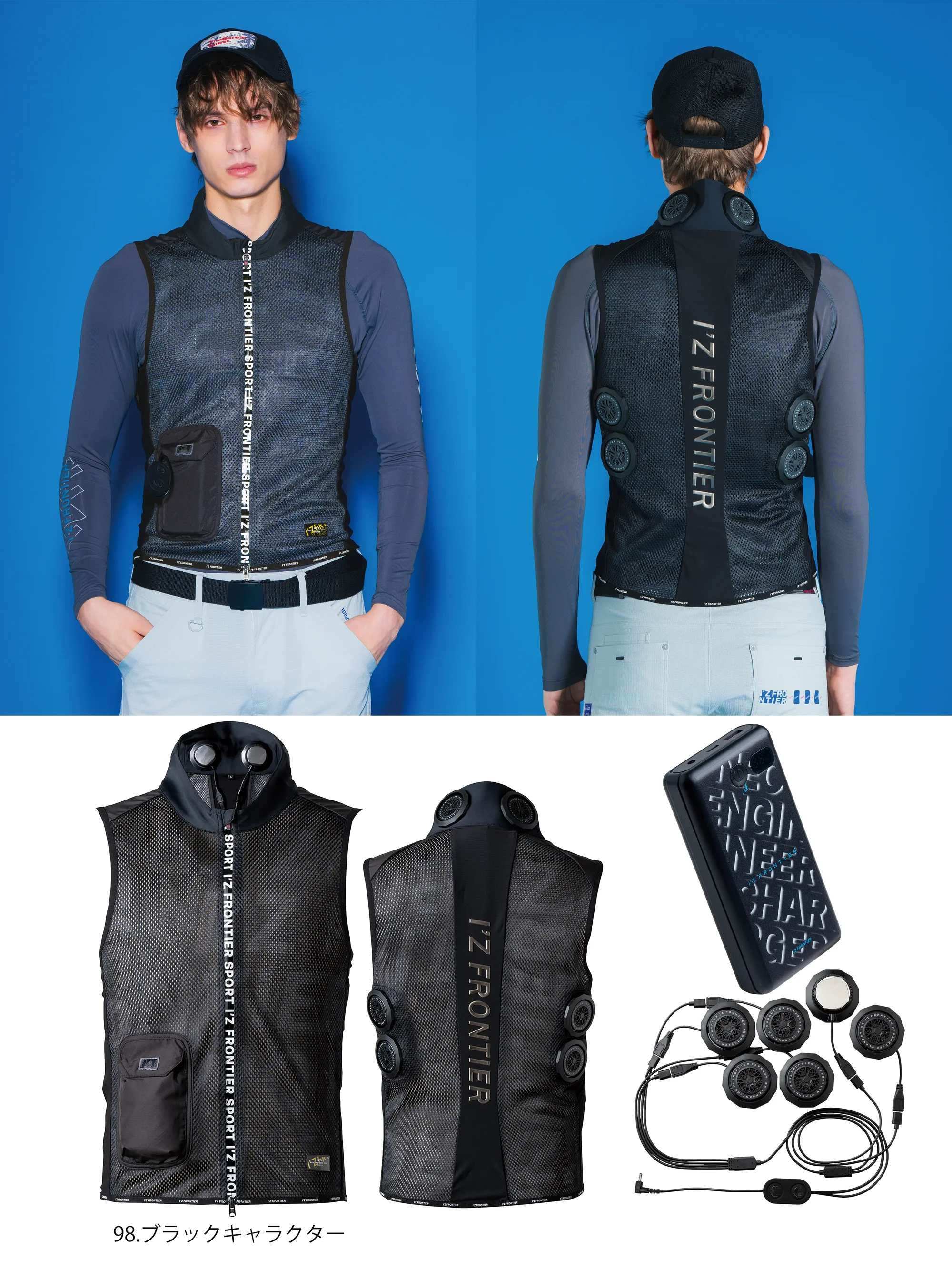 ・品番:PS1076・商品名:冷却ペルチェ 6個タイプ インナーベスト&デバイス・バッテリーセット・カラー:98.ブラックキャラクター【セット内容】インナーベスト・ペルチェクールデバイス・バッテリー・充電用ケーブル(Type-A-Type-C)・取扱説明書兼保証書※万が一赤みやかゆみ等、お肌に異常が生じた場合は直ちにご使用を中止してください。