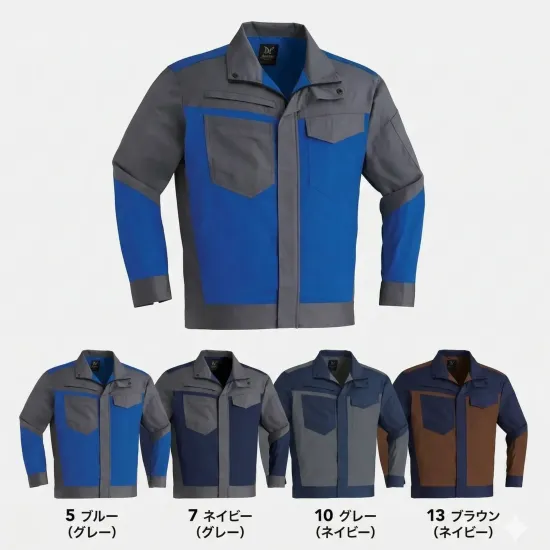 ・品番:3602・商品名:難燃長袖ブルゾン・カラー(配色):5.ブルー(グレー)、7.ネイビー(グレー)、10.グレー(ネイビー)、13.ブラウン(ネイビー)・サイズ:S~6L