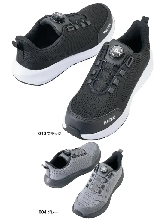 ダイヤル式シューレースで素早くフィット調整が可能なTULTEXのセーフティシューズ。超軽量約290g設計とニットアッパーにより通気性と快適性を両立し、EVAミッドソールと5mmインソールで優れたクッション性を発揮。軽作業に最適な高コストパフォーマンスモデルです。