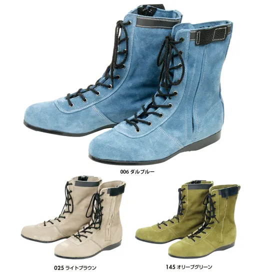 ・鋼製先芯を採用し落下物や衝撃からつま先を保護・袋ベロ仕様でゴミや砂の侵入を防ぐ・柔らかく足馴染みの良い牛ベロア革によるフィット感・サイドファスナー仕様で着脱がスムーズ・履き口に反射材を配置し夜間の視認性を向上・高いグリップ力で足場の安定性を確保し高所作業に最適