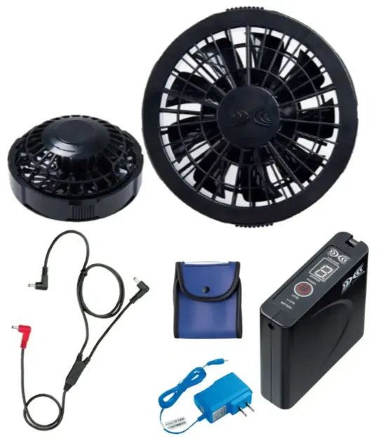 ・品番:P00030(SKSP02BL)・セット内容:ファン(P00009)×1、バッテリー(P00012)×1、ロングケーブル(P00002)×1、ACアダプター×1、バッテリーケース×1・最大電圧:7.2V・最大風量:48.8L/秒・出力切替:7.2V・6.0V・5.0V・3.3V・連続稼働時間:約8時間~24時間以上