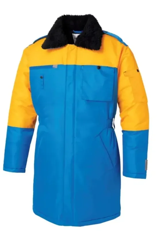 視認性の高いカラーと実用性を兼ね備えた防寒コートです。素材にはツイルを使用し、表地・中綿・裏地すべてにポリエステル100%を採用。冷え込みやすい現場でもしっかりと体を包み込み、作業中の快適さと安全性を高めます。冷所作業にも対応し、秋冬シーズンの屋外作業や警備・物流現場に適した一着です。