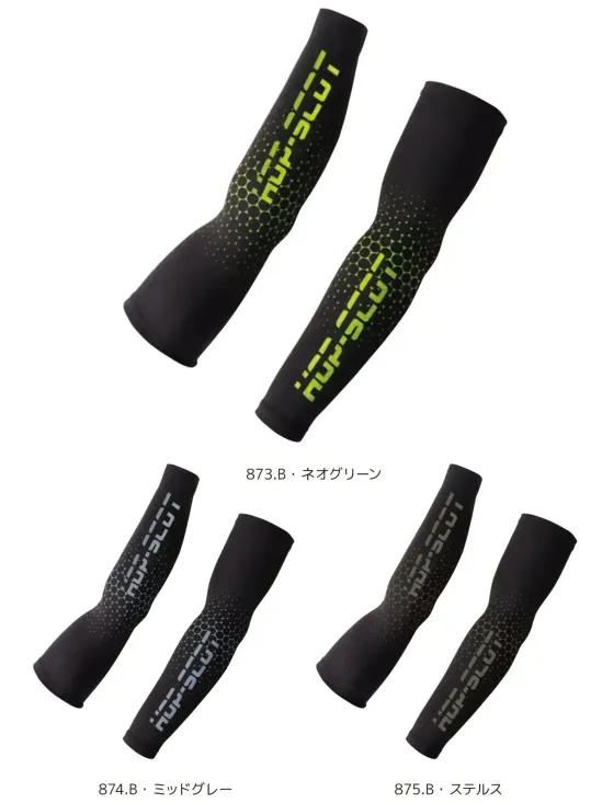 ・接触冷感機能により装着した瞬間からひんやりとした涼感を実感・高ストレッチ素材で腕にしっかりフィットし動作を妨げない・吸汗速乾性に優れ汗を素早く拡散しベタつきを軽減・UVカット機能で屋外作業時の紫外線対策にも対応・フラットシーマ仕様で肌あたりがやさしく長時間でも快適・オリジナルロゴプリントでスタイリッシュなデザイン性をプラス