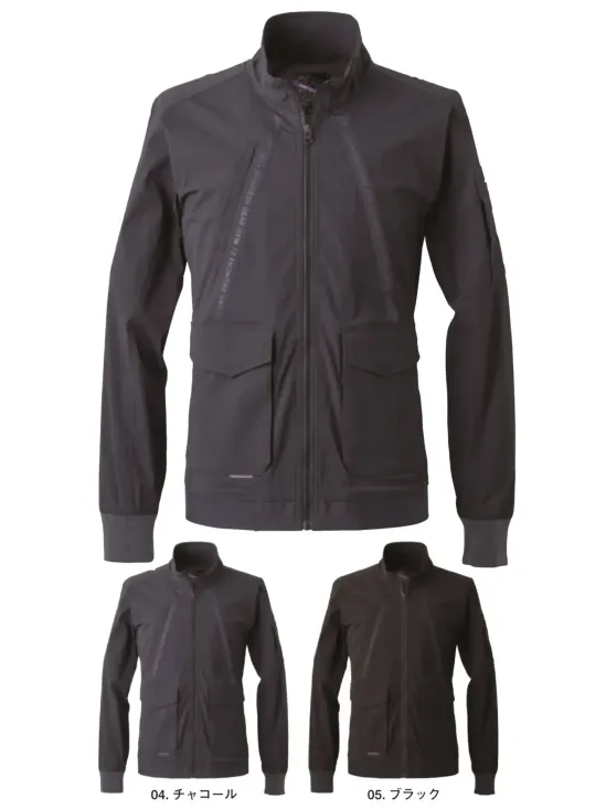 ・ナイロンリップストップ素材で高い耐久性を発揮・タテヨコに伸びる2WAYストレッチでスムーズな動作をサポート・ナイロン特有のマット感とドライタッチで汗ばむ夏にもサラッと着用できる・右胸ファスナーポケット付きで収納性を確保・左袖ペン差しポケットで作業効率アップ・フロント大容量ダブルポケットで実用性も充実