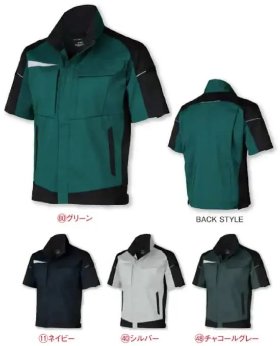 ・品番:269101・品名:半袖ジャンパー・カラー:11ネイビー、40シルバー、48チャコールグレー、80グリーン・サイズ:SS、S、M、L、LL、3L、4L、5L、6L(SS・Sはユニセックスサイズ)・規格:JIS T-8118 静電気帯電防止作業服