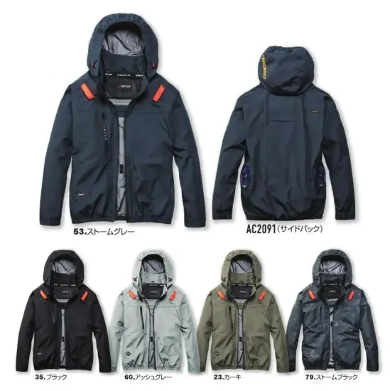 ・品番:AC2091・カラー:23.カーキ 35.ブラック 53.ストームグレー 60.アッシュグレー 79.ストームブラック・サイズ:S~3XL※ご使用の際は、別売りAIRCRAFT専用ファン バッテリーをご使用ください。※アルミコーティング加工は洗濯や摩擦により剥離 変色する場合があります。※溶接、たき火、ストーブ、鋳造現場など火気を扱う現場では使用しないでください。