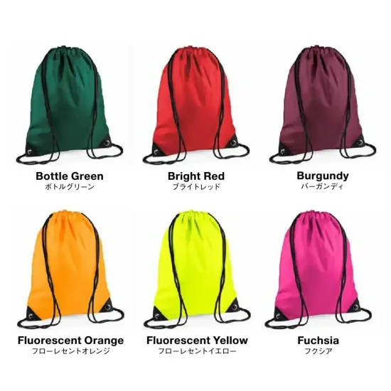 BagBaseのプレミアムジムサックは、ポリエステル100%210Dの軽量素材と容量約11L設計で日常使いに最適。33×45cmの使いやすいサイズ感とドローコード仕様でスムーズな開閉を実現し、通勤通学からスポーツ、イベント用バッグまで幅広く活躍します。