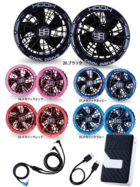 ・品番:SV900・セット内容:バッテリー×1、ファン×2、接続ケーブル×1、USB Type-C充電ケーブル×1、取扱説明書/保証書×1 ※USB-C電源アダプターは別売りです。・カラー:16.メタリックピンク、20.ブラック、21.メタリックネイビー、33.メタリックレッド、35.メタリックブルー・最大出力:19V・最大風量:82L/秒・対応:快適ウェアシリーズ対応