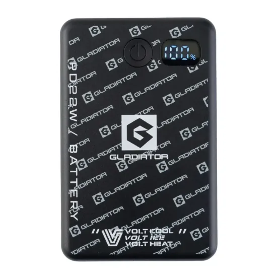 手のひらサイズでハイパワーを実現したGLADIATORのPD対応モバイルバッテリー。10000mAhの大容量と最大PD20W出力により、ファンやペルチェクーラーを安定駆動。デジタル残量表示で電池管理も簡単。