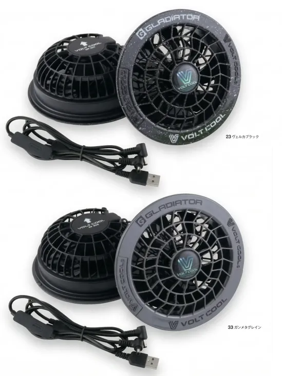 VOLT COOL®限定エンブレム仕様のファンセット。最大風量47L/秒のパワフル送風とUSB接続対応により高い汎用性を実現。約7時間の連続稼働で長時間の作業でも快適な風を送り続けます。