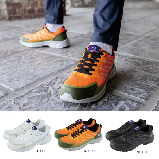 ・片足約240gの超軽量設計で長時間でも疲れにくい・つま先を保護するプラスチック先芯を採用・紐を結ぶ手間なしゴムレース仕様で着脱スムーズ・クッション性の高いインソールで快適な歩行をサポート・通気性に優れたメッシュ素材でムレにくく快適・スタイリッシュなデザインで作業から普段履きまで対応