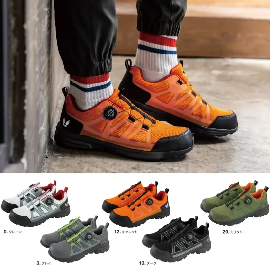 ・ダイヤル操作で瞬時にフィットするダイヤルシステムを搭載・脱ぎ履きがスムーズで作業効率を向上・通気性に優れたメッシュアッパーでムレを軽減・クッション性の高いインソールで足への負担を軽減・ワークシーンにも映えるスタイリッシュデザイン