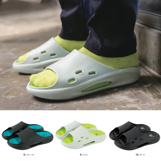 硬さの異なるEVAの2層構造が生む高反発クッションで足への負担を軽減するサンダル。通気ホール設計とエアベントによりムレを抑え快適な履き心地を実現。洗えるインソールで清潔を保ち、立ち仕事や室内作業にも最適なリラックスサンダルです。