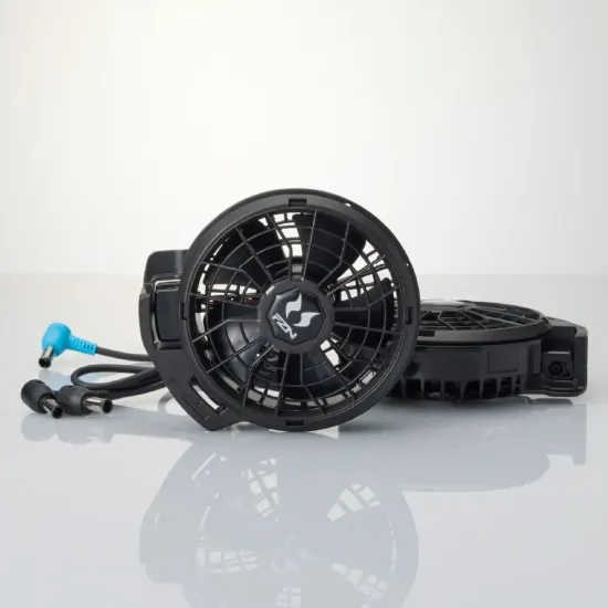 最大風量約6.0㎥/minを実現した24V仕様の高出力フラットファンセットです。フラット形状によりウェア内にすっきり収まり 衣服のシルエットを崩しにくい設計。24V駆動ならではの圧倒的な送風力で 猛暑環境下の作業を強力にサポートします。