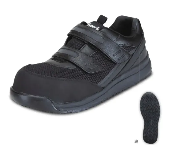 ■使用素材→編物・合成皮革・EVA・ハイパーVソール(合成ゴム)■素材特徴→JSAA耐滑性・耐油底・ムレにくい・かかと部の衝撃エネルギー吸収性■形状特徴→JSAA規格A種・樹脂先芯・マジックタイプ
