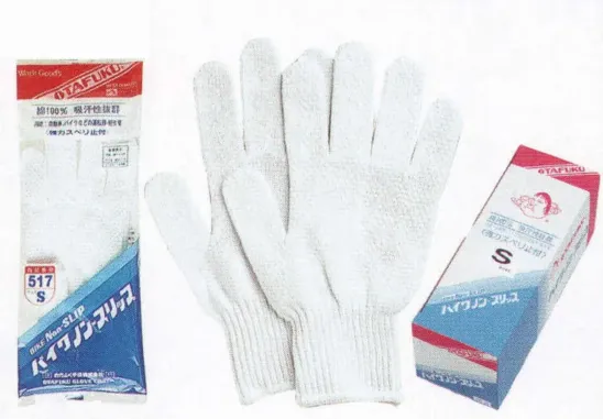 女性も使いやすい小さめサイズ。綿100%。1ダース化粧箱入り。10ゲージスベリ止め付薄手タイプ。