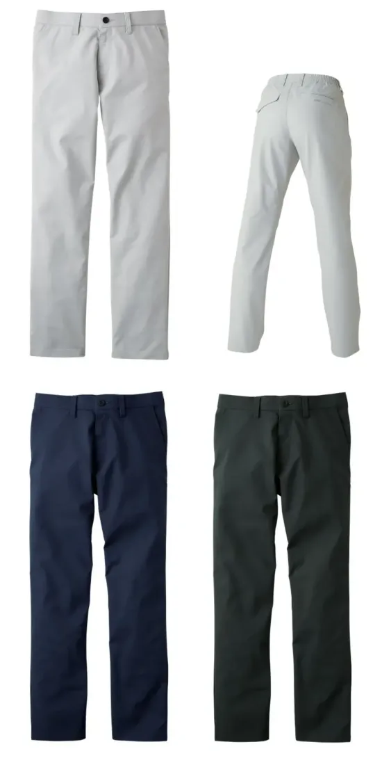 ・JIS T8118適合の静電気・帯電防止素材を使用・ポリウレタン不使用でしなやかなストレッチ性とハリ感が長持ち・日本製ストレッチ生地で自然な動きやすさ・背面リフレクタープリントを配置・左側フラップ付きポケットを装備・サイドウエストゴム仕様で快適なフィット感・オリジナル樹脂ボタンを使用・REGULAR FITで程よいサイズ感