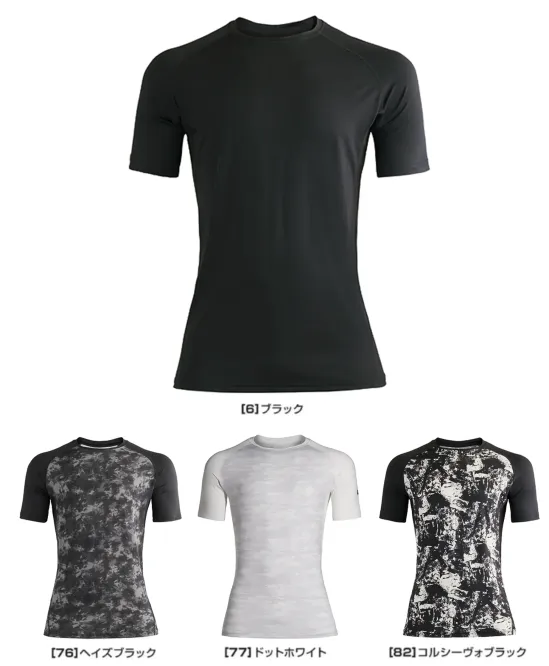 ・品番:0352・商品名:アイスシールドショートスリーブ・カラー:6.ブラック、76.ヘイズブラック、77.ドットホワイト、82.コルジーヴォブラック・サイズ:S~4L/6L※77.ドットホワイト、82.コルシーヴォブラックはM~3L・重量:約130g(Lサイズ)