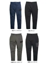 ・触れた瞬間にひんやり感じる冷感素材(Q-max 0.174)を使用。・縦横両方向に伸びる4WAYストレッチ(伸長率25%)素材で、動きやすさを確保。・汗を素早く吸収し、乾きやすい素材で快適性を維持。・紫外線を強力にカットし、日焼け防止。・太陽光による熱を遮り、衣服内温度の上昇を抑制。・水を弾く加工が施されており、洗濯を繰り返しても持続。・汚れが付きにくく、落ちやすい表面加工。・ムレにくく快適な着心地を維持。・右ポケットにはファスナーポケット・左はドットボタン付ダブルポケット・膝と膝裏はベンチレーション・ドローコードアジャスター