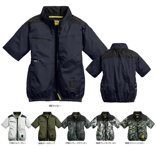 ・品番:05611・商品名:サイドファンショートジャケット・カラー:5.ネイビー、12.シルバーグレー、28.ダークオリーブ、76.スプレーグラフィティ、82.ブレイキンモールド、89.スラッシュイエロー・サイズ:S~5L/7L ※28.ダークオリーブ、76.スプレーグラフィティはM~5L/7L ※82.ブレイキンモールド、89.スラッシュイエローはM~5L・重量:約280g(Lサイズ)※本製品にファン・バッテリー・保冷剤は含まれていません。別途お買い求めのうえ、ご使用ください。