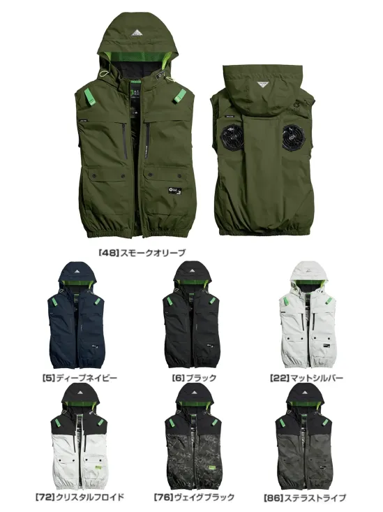 ・品番:05662・カラー:[5]ディープネイビー [6]ブラック [22]マットシルバー [48]スモークオリーブ [72]クリスタルフロイド [76]ウェイグブラック [86]ステラストライプ・サイズ:S~4L/6L/8L ※[72]クリスタルフロイド [76]ヴェイグブラックはM~4L・重量:約360g(Lサイズ)※本製品にファン・バッテリー・保冷剤は含まれていません。別途お買い求めのうえ、ご使用ください。