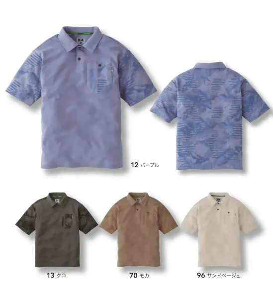 ・品番:5995-621・商品名:迷彩柄半袖ポロシャツ・カラー:12 パープル 13 クロ 70 モカ 96 サンドベージュ・サイズ:M~2XL※当商品は数量限定です。