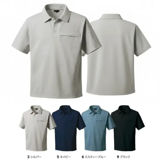 TAKAYA WORK WEAR TW-ECOシリーズの半袖ポロシャツ。東レの植物由来ポリエステル「エコディア®」を使用したポリエステル100%素材で環境配慮と高機能を両立。4WAYストレッチと吸汗速乾性により動きやすく快適な着心地を実現します。